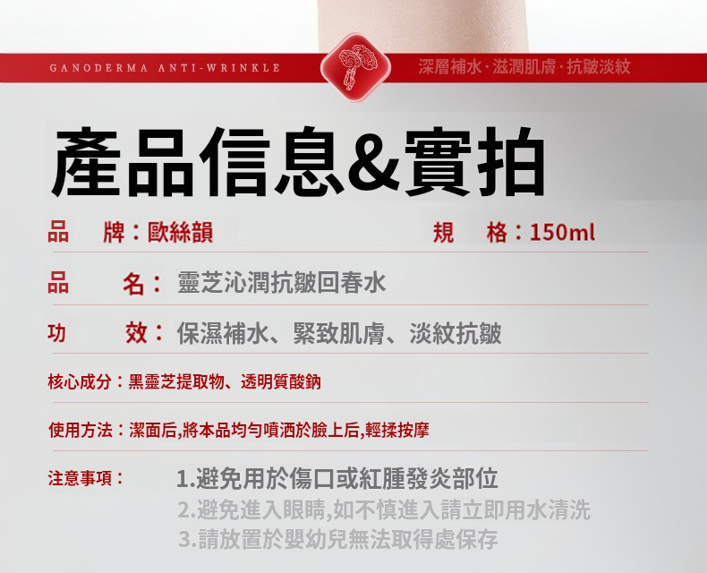 搶購_抗皺新品【靈芝沁潤抗皺回春水】臉上貼金_整顆靈芝滋養+99.9_黃金精華超級抗氧化+_煙酰胺+多肽等配方專業祛除皺紋_8秒吸收嫩膚煥膚_敏感肌可用
